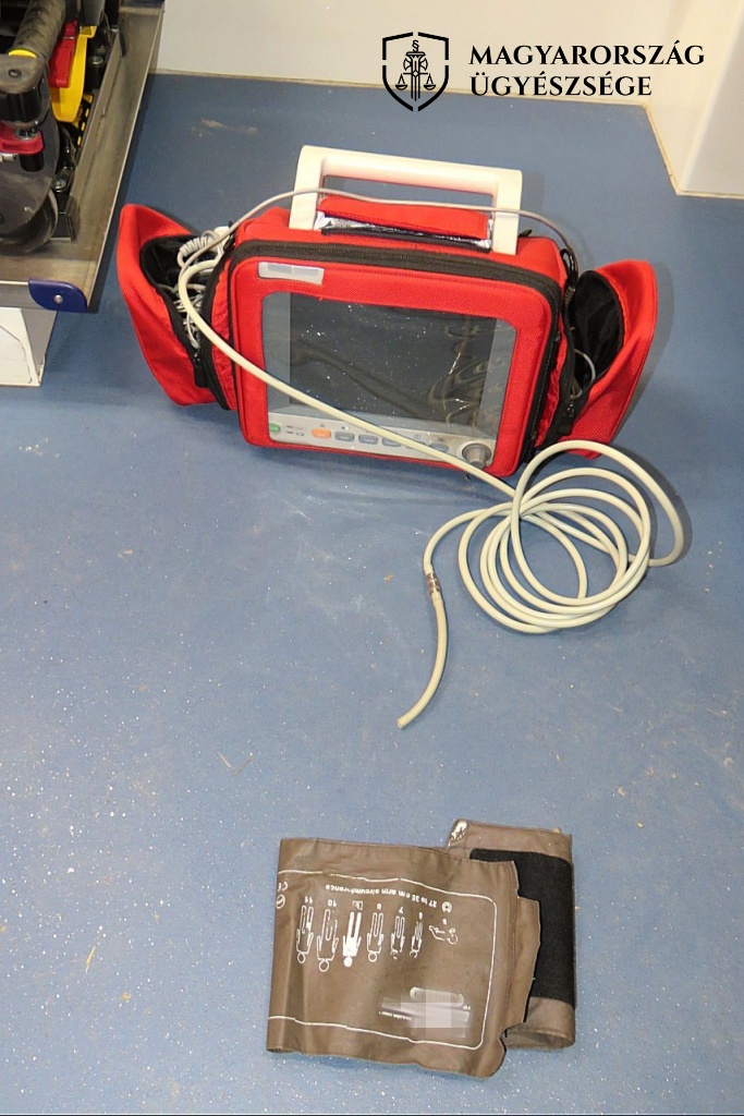 A képen a terhelt által megrongált vérnyomásmérő látható.