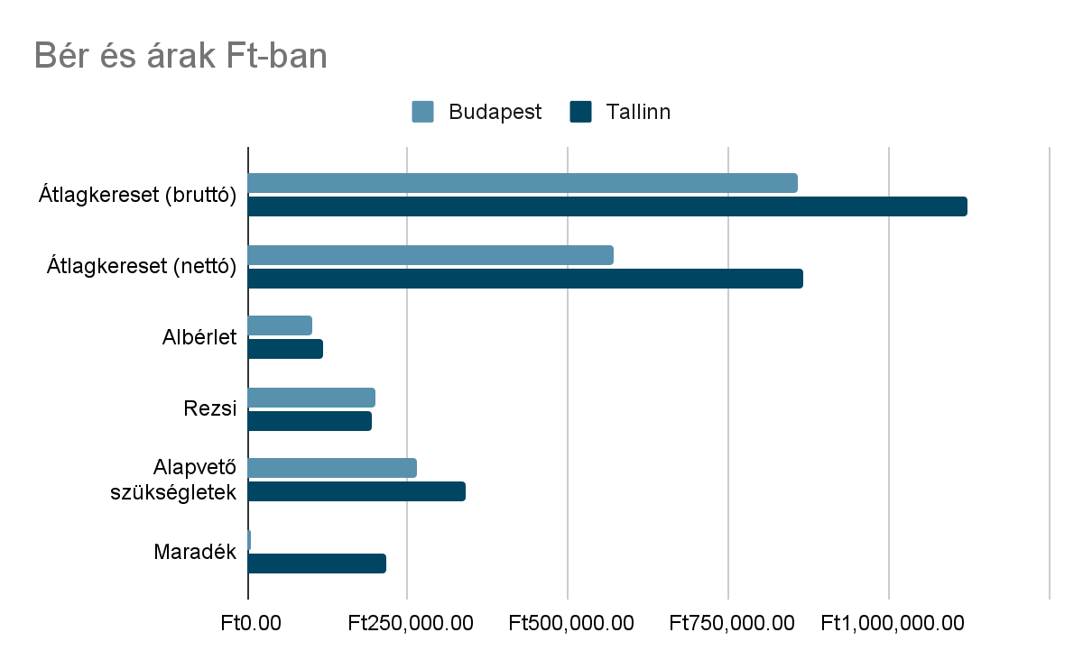 Itt jegyezzük meg, hogy a rendkívül kedvezőtlen magyar adózás miatt a nettó lényegesen alacsonyabb Budapesten, mint Tallinnban.